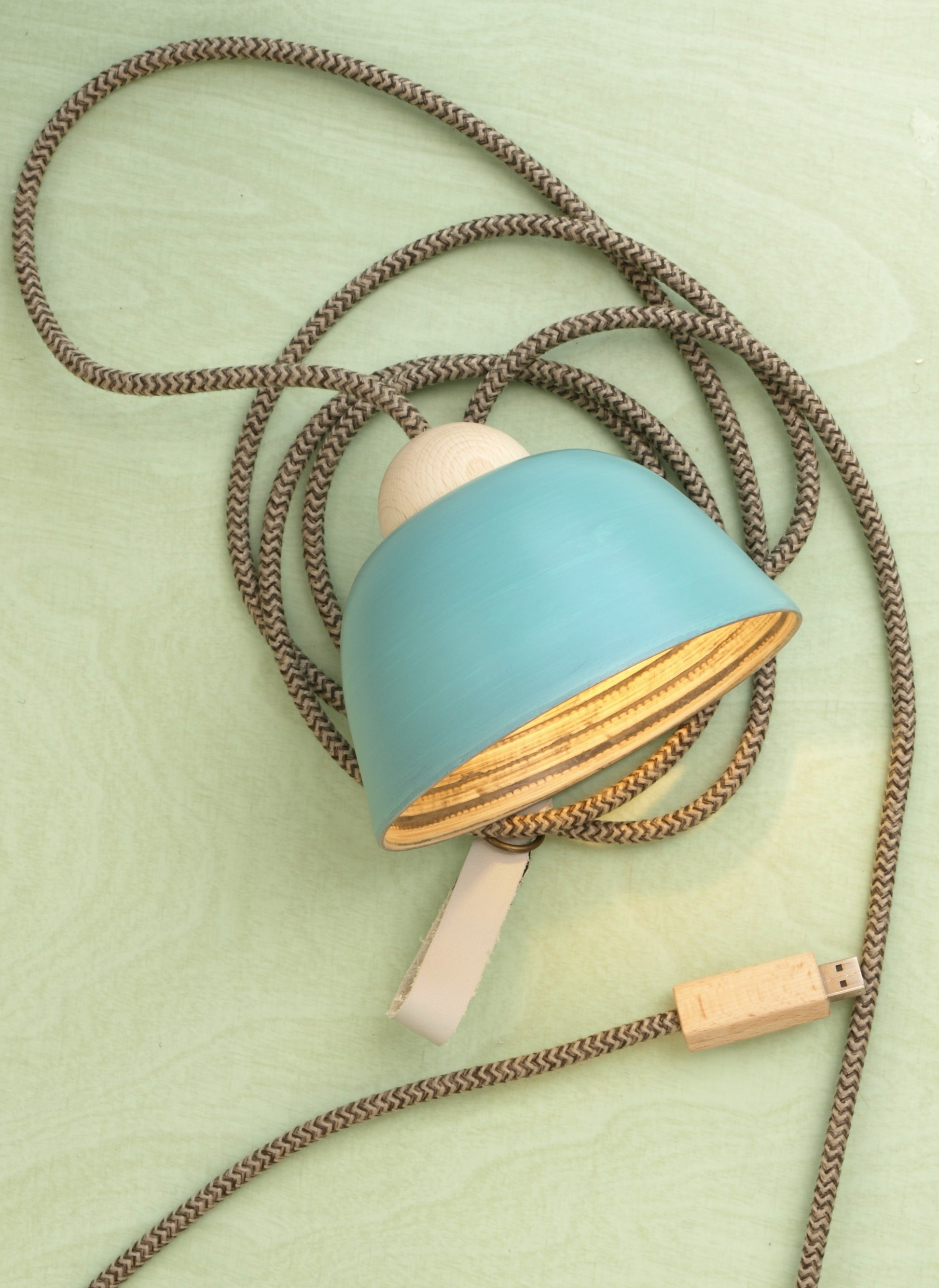HYGGE-Licht Bambus-Türkis USB-Hängeleuchte (Campervan/Balkon/Terrasse/Zelt)